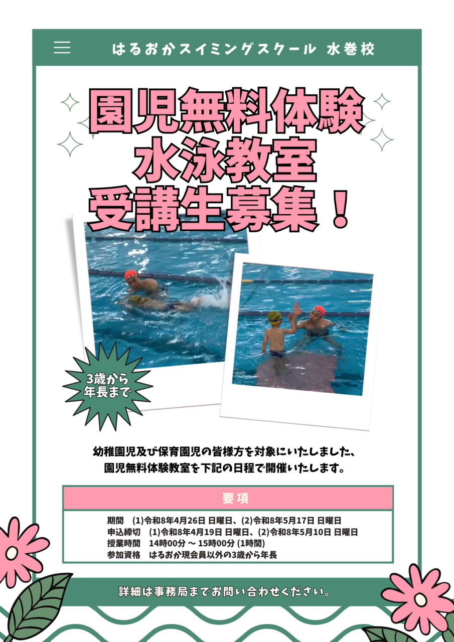 園児無料体験水泳教室のご案内